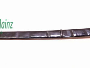 vernickelte Klinge mit beidsitiger Blutrinne, Griff mit beschädigtem Rochenhautbelag und Silberdrahbewickelung, durchbrochener Griffkorb messingfarben, mit Fingerschlaufe, nachlackierte Metallscheide mit sichtbaren Dellen…dekorativ mit viel Restaurierungspotenzial…