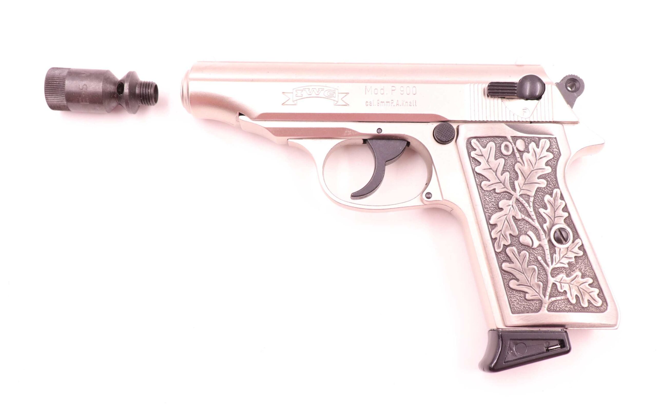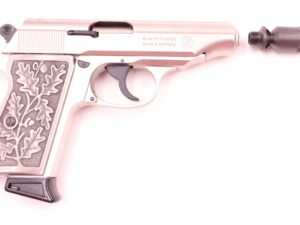 ungeschossen, aus Sammlungsauflösung, perfekter Nachbau der berühmten Walther Polizeipistole/PP, in Form, Funktion und Gewicht, (auch Dienstwaffe von 007), in matt vernickelter limitierter Luxusausführung, gegossene Metallgriffschalen mit Eichenlaubmotiv, im Kunststoffkoffer mit Zubehör, wie bebildert, noch frei ab 18 Jahren….werkstattgeprüft mit voller Funktion, Verkauf erfolgt als Sammlerwaffe ohne Garantie & Gewährleistung