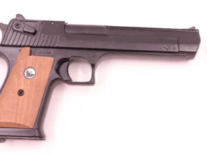 ungeschossen, aus Sammlungsauflösung, gelungener Nachbau der berühmten israelischen „Desert Eagle“ in Form, Funktion und Mechanik, mit herausnehmbarem 10+1 Schuss Stahlmagazin, Holzgriffschalen mit eingelegtem Firmenemblem, im Original Karton mit Zubehör, wie bebildert, noch frei ab 18 Jahren….werkstattgeprüft mit voller Funktion, Verkauf erfolgt als Sammlerwaffe ohne Garantie & Gewährleistung…die Produktion ist aus Kostengründen eingestellt worden..Rarität