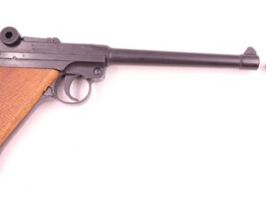 ungeschossen, aus Sammlungsauflösung, pefekter Nachbau in Form, Größe, Gewicht und Mechanik (Kniegelnekverschluss) der berühmten deutschen Wehrmachtspistole von WKI, mit langem Lauf in Artillerie-Ausführung mit herausnehmbarem Stainless stahlmagazin 4+1 Schuss,im Kunststoffkoffer mit Zubehör, wie bebildert, noch frei ab 18 Jahren….werkstattgeprüft mit voller Funktion, Verkauf erfolgt als Sammlerwaffe ohne Garantie & Gewährleistung