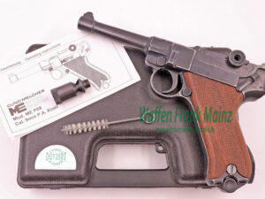 aus Sammlungsauflösung, selten geschossen, Kanten teilweise blank gescheuert durch verwendetes Holster, pefekter Nachbau in Form, Größe, Gewicht und Mechanik (Kniegelnekverschluss) der berühmten deutschen Wehrmachtspistole von WKI und II, mit herausnehmbarem Stainless Stahlmagazin 4+1 Schuss, in Kunststoffbox mit Zubehör, wie bebildert, noch frei ab 18 Jahren….werkstattgeprüft mit voller Funktion, Verkauf erfolgt als Sammlerwaffe ohne Garantie&Gewährleistung