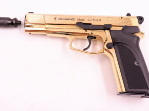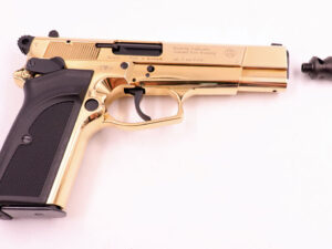 ungeschossen, aus Sammlungausflösung, 24 Karat vergoldet, perfekte Lizenzfertigung der berühmten Ordonnanzpistole in DA-Ausführung, mit 9 Schuss Stahlmagazin, mit passendem schwarzen Gürtellederholster, in Original Kunststoffkoffer und Zubehör, wie bebildert, noch frei ab 18 Jahren….