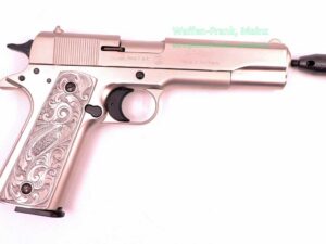 aus Sammlungsauflösung, ungeschossen, 8+1 Schuss, limitierte Luxus Ausführung, komplett matt vernickelt, mit Gussgriffschalen mit Arabeskenverzierung, in Original Verpackung mit Zubehör, wie bebildert noch frei ab 18 Jahren….werkstattgeprüft mit voller Funktion, Verkauf erfolgt als Sammlerwaffe ohne Garantie&Gewährleistung