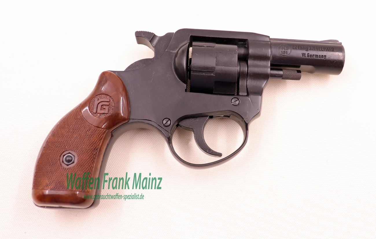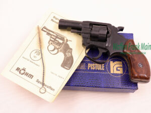 selten geschossene Schrankwaffe, DA-Abzug mit ausklappbarer Trommel, 6-schüssig, Mündungsbereich des Laufes 15mm, somit gleichzeitig Abschussbecher für alle gängigen Pyromunitionen, (passende Munition ab Lager), noch in Originalverpackung mit abgebildetem Zubehör…frei ab 18 Jahren…Universalrevolver mit preisgünstiger Munition zum Verschießen von Pyrotechnik…Startrevolver….