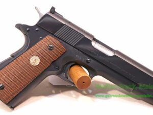 Selten geschossene Schrankwaffe aus Sammlungsauflösung, in Originalzustand, hier wurde ein original Colt-Conversion-Unit-Schlitten auf dein original Colt-Griffstück aus der 70ziger Serie fachlich verbaut, verstellbares Matchvisier, fein und sauber gehender Abzugsmechanismus, mit original Holzgriffschalen mit eingelegtem goldfarbenen Firmen-Emblem, sowie herausnehmbares 10+1 Schuss Stahlmagazin …ein Stück zum Sammeln und Schießen, perfekte Trainingswaffe für den Großkaliber-Schützen…