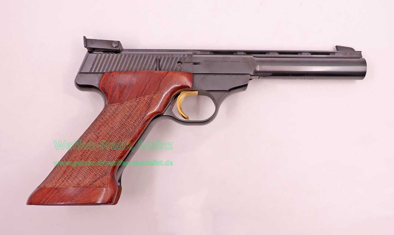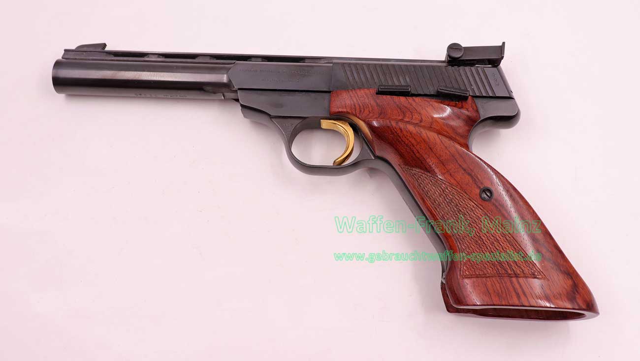 selten geschossene Schrankwaffe, bewährte Ganzstahlausführung, mit vergoldetem Sportabzug und Visierung, 10+1 Schuß Stahlmagazin, original Holzgriff mit Daumenauflage für Rechtsschützen….ein Stück zum Sammeln und Schießen