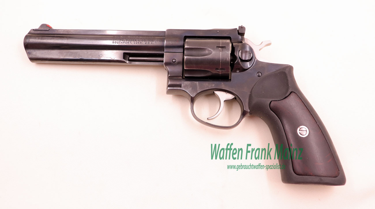 selten geschossen, nur jagdlich geführt, mit entsprechenden Blankstellen an den Kanten im Außenbereich durch Tragen im Holster, massiver 6-schüssiger DA-Revolver, mit verstellbarem Kontrastvisier, Hahn- und Abzug blank poliert, Rest klassisch brüniert, mit neutralem, original Gummigriff mit Holzeinlage….zuverlässig und robust für Sport und Jagd..