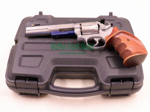 selten geschossene Schrankwaffe, maßgeschneiderte Einzelanfertigung für PPC/1500 getrimmt, mit 5,5″ Polygon-Matchlauf, perfekt getuntes Trommel- und Abzugstiming, mit breitem sportlichen Abzug und Hahn mit Triggerstop, Seitenflächen davon mit Sonnenschliff, langer, neu gestalteter Entriegelungsschieber für Trommel, mit zusätzlicher, verstärkter Trommel Arretierung für hohe Schusszahlen, Arist Crat Visierschiene mit tiefligendem Kontrastvisier, mit Kornschnellverstellung von 7 bis 50m, Original Nill Sondergriff mit Dauemnauflage für Rechtsschützen, mit Punsierung und Fingerrillen….eine echter Lochbohrer und Schießmaschine für den Liebhaber und Kenner auf höchstem Handwerkslevel ….