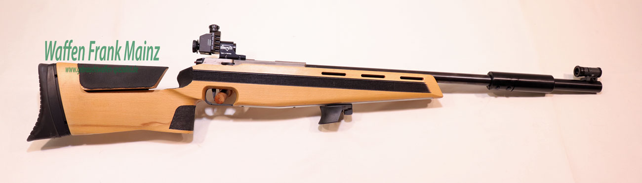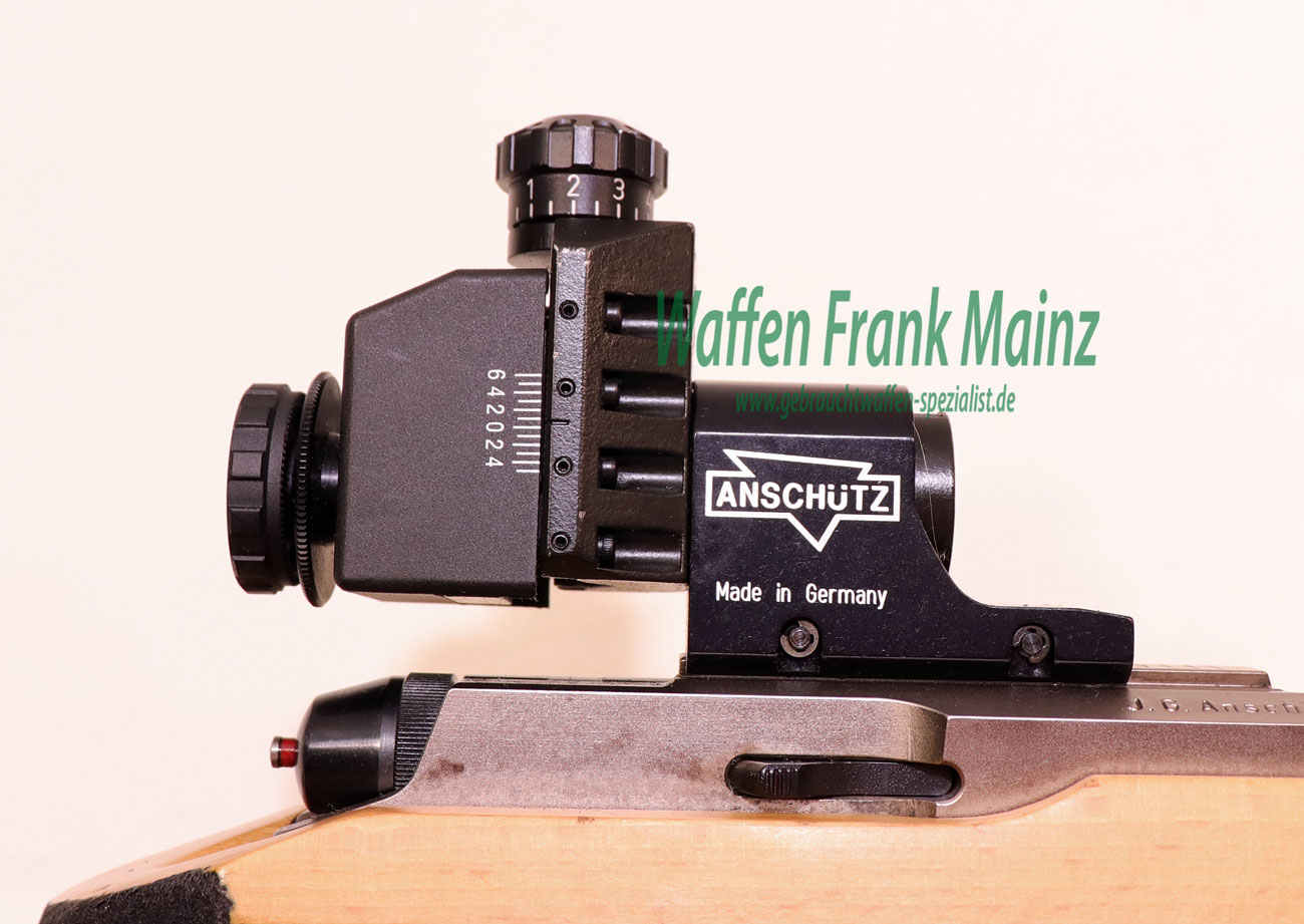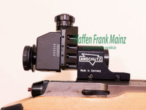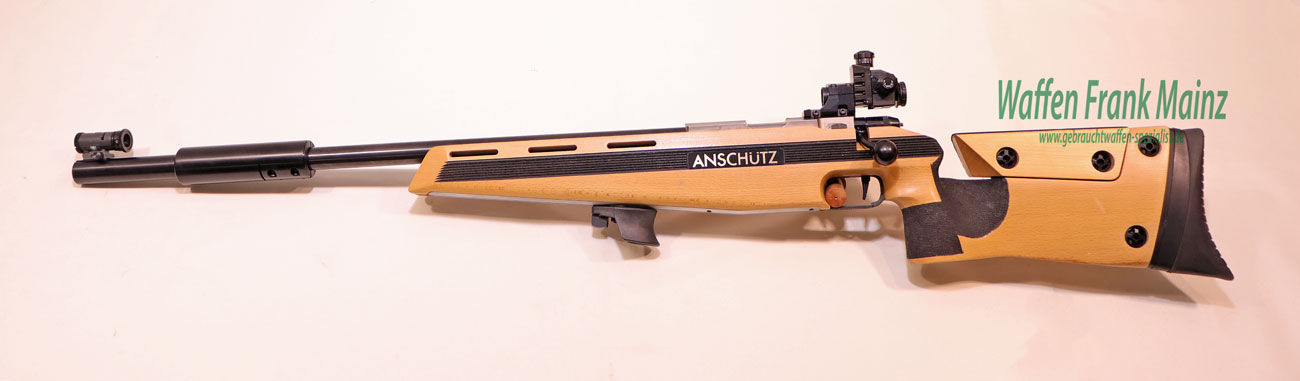 neuwertige Schrankwaffe, nur wenige Probeschüsse abgegeben, bereits mit der neuesten Verschlusshülse mit Linksauswurf und mehrfach verstellbarem Matchabzug, mit Original Anschütz Dioptervisierung, mit verstellbarem Ringkorneinsatz von 2-5mm Durchmesser, mit weiterem Zubehör: wie verschiebbarem Laufgewicht, Handstop mit Schießriemenaufnahme, heller Universal-Holzschaft, Griffrillen und Bereich des Pistolengriffes farblich schwarz abgesetzt, Hinterschaft mehrfach verstellbar……(große Auswahl an Munition ab Lager)…..mit dieser Modellserie wurden zahllose Medaillen und Titel gewonnen…
