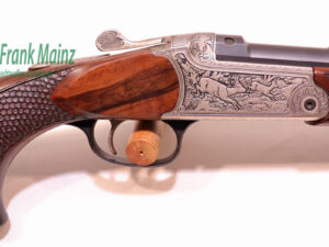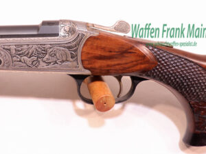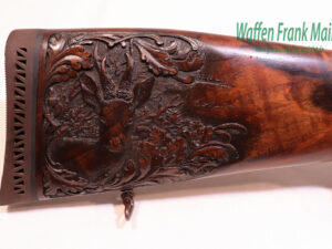 selten geschossen, aus Sammlungsauflösung, in Topzustand, mit patentiertem Sicherheits-Handspannersystem, Feinabzug, jagdliche Werksgravur, rechts Rehwild, links Schwarzwild, Stahlteile matt schwarz vernickelt, hochwertiger Wurzelmaserschaft, Holzklasse 6-7, mit langgezogener bayrischer Backe mit Doppelfalz, Schaftlänge einschl. Gummikappe 370mm, hochwertige “Staudacher”-Schaftverschneidung, handgestochene Schuppenfischhaut und tiefmodellierter Eichenlaubeinrahmung, auf der rechten Schafthinterseite tief gestochen und modelliertes Rehwildmotiv ebenfalls mit Eichenlaubeinrahmung, leicht zerlegbar mit Wechsellaufmöglichkeit in den Kal. .22Hornet – 9,3x74R, außerdem haben wir mehrere Marken ZFs bereits mit montierter Blaser-Sattelmntage (siehe Art. 209213, 216010, 216581)…..für den Liebhaber von leichten, führigen und ethisch klassischen Jagdwaffen….