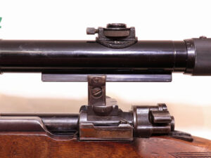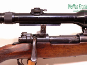 Büchsenmacher Einzelanfertigung, unter Verwendung eines Systems Typ Mauser 98, flach geschmiedeter Kammerstengel, klassische Flügelsicherung, deutscher Stecher, auch als Direktabzug gut verwendbar, handgeschäfteter Schaft mit Schnäuzchen am Vorderschaft, deutsche Backe für Rechtsschützen, Schaftlänge: 375mm, Suhler Einhakmontage mit Durchsicht mit ZF Tell/Bischof,Wetzlar 6x 42 Absehen 1, (Optik generalüberholt)….ein Stück mit Geschichte für den tägliche Einsatz als Hundeführer oder bei schlecht Wetter….