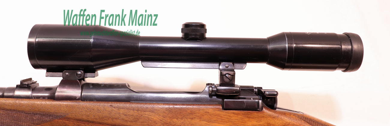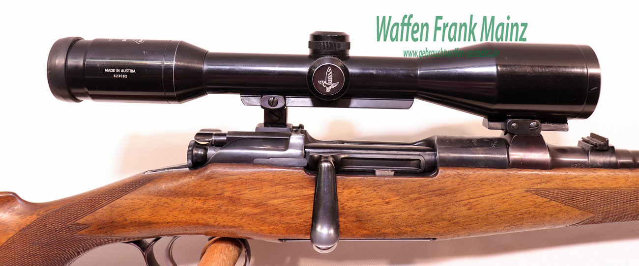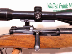 sehr gepflegte Schrankwaffe, mit voller sichtbarer Beschriftung auf der kompletten Systemhülse, ausklappbares 5+1 Schuss Trommelmagazin aus Stahl, deutscher Stecher, traumhafter Schloßgang, Suhler-Einhak-Dreifußmontage mit ZF Swarovski Nova 6×42 Absehen 4 (montiert in den 80er Jahren), heller Nussbaumschaft mit deutscher Backe für Rechtsschützen, Schaftlänge 355mm………mit der weltbekannten Mauserpatrone für Jagd und Militär, präzise, rückstossarm und wildbretschonend für alles Schalenwild in Europa….. (große Geschossauswahl einschl. Vollmantel ab Lager)