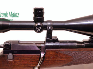 gut gepflegte Schrankwaffe, wurde nur auf dem Ansitz auf Schwarz- und Rotwild mit Erfolg geführt, patentierter Teleskopverschluß als Meilenstein der Waffentechnik, (Waffenlänge wird dadurch 9cm minimiert), mit Erfolg weltweit in allen Kalibern verkauft, mit Schlagstückverriegelung, deutscher Stecher, auch als Direktabzug gut verwendbar, integrierter Magazinschacht mit 3+1 Schuss, mit schwerem konischem Safarilauf, mit 19mm Mündungsdurchmesser (daher gutes Rückstoss- und Schwingungsverhalten), verstellbares Williams Visier, EAW Schwenkmontage mit ZF Habicht Nova 8×56 mit dimmbarem Leuchtabsehen und abnehmbarer Leuchteinheit, Nussbaumschaft mit Edelholzabschluss an Vorderschaft und Pistolengriff, langgezogene deutsche Backe für Rechtsschützen, Schaftlänge mit Gummikappe 385mm…..zuverlässiges und bewährtes Waffensystem für weltweiten Jagdeinsatz und Safari…(Patronenauswahl, auch noch Vollmantel ab Lager)