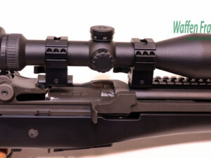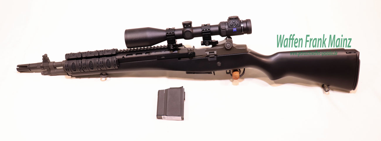 aus Sammlungsauflösung, nur Probe geschossen, klassische, verstellbare Trommel-Dioptervisierung, das weltweit erfolgreiche Garand-Patent optimal in Funktion, Qualität und Präzision verbessert, Stahlteile mit schwarz-grünlicher Phosphatierung, abnehmbarer Feuerdämpfer, schwarz beschichteter Holzschaft, mit abklappbarem Schaftdeckel als zusätzliche Schulterauflage, und darunter versenktem Reinigungsfach, inkl. original 10-Schuss Stahlmagazin und einem auf 2-Schuss reduziertem 5-Schuss Magazin und UTG Gummivorderschaftsgriff, UTG-Aufkippmontage auf Picatinnyschiene mit hochwertigem ZF Zeiss Conquest DL 3-12×50 mit dimmbarem Leuchpunkt Absehen 4, mit Höhenschnellverstellung, Schaftlänge 350mm…..wird heute noch bei diversen Sicherheitskräften und Militär als Sniperwaffe verwendet….