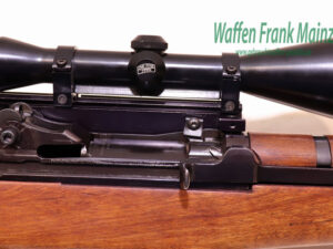 selten geschossen, aus Sammlungsauflösung, aus Original klassischer Springfieldfertigung, noch mit klassischer Ladestreifen Zuführung, (ein Ladestreifen inkl.), werksüberholt mit neuem Lauf, Holzschaft mit Original aufgeschnürter Lederbacke, für Scharfschützen entwickelt, und Klappdeckel in der Schaftkappe zum Putzfach, Schaftlänge 340mm, mit B-Square Seitenmontage mit ZF Zeiss Jena 8×56-M Absehen 4, somit ist auch ein gleichzeitiges Schießen über das Dioptertrommelvisier möglich, Lauf spiegelblank, da nur Funktionsprobe geschossen