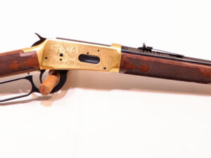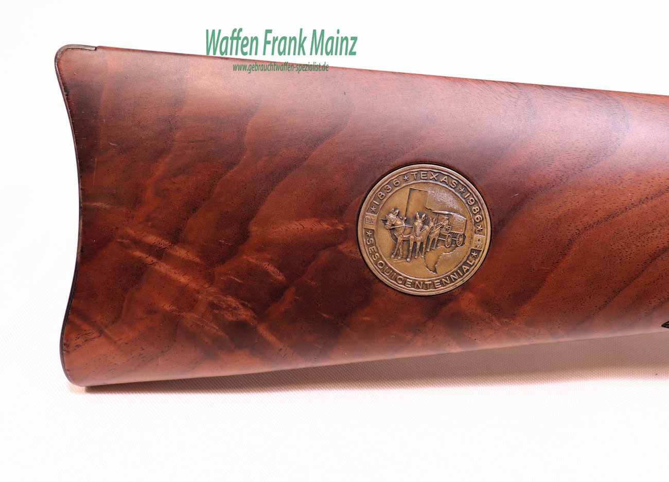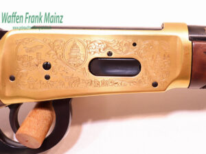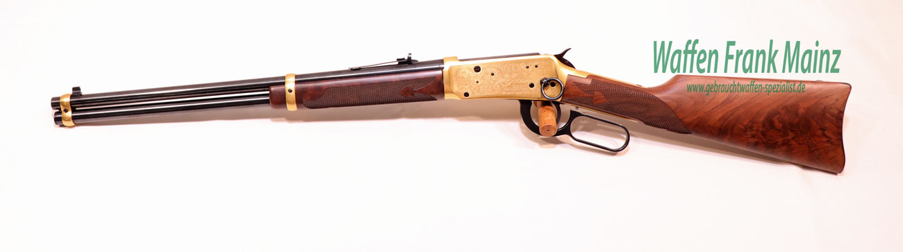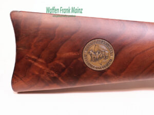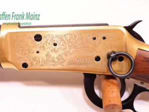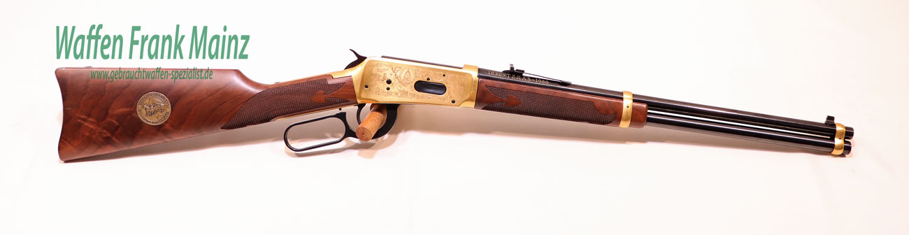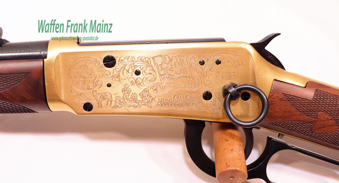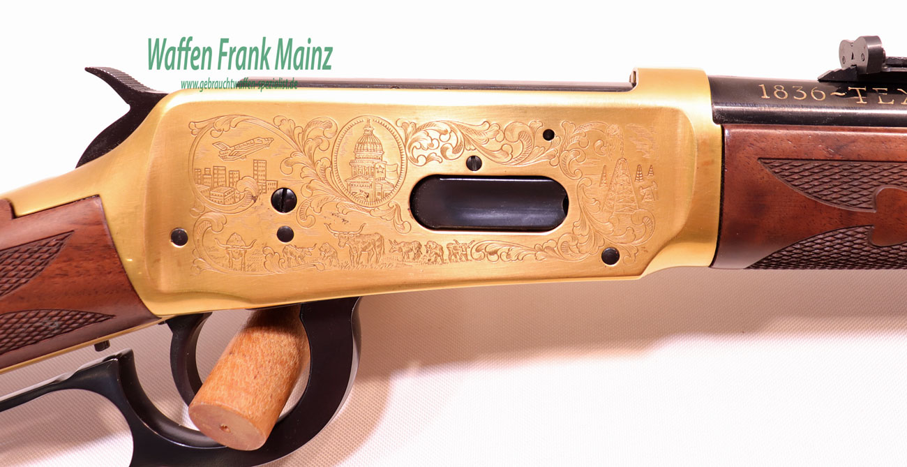 selten geschossen, aus Sammlungsauflösung, aus limitierter Sonderserie, noch im Originalwerk in New Haven, USA hochwertig gefertigt, Systemkasten mit beidseitiger Gravur/vergoldet, und zusätzlicher Laufbeschriftung „1836 Texas -1986“ und auf dem Hinterschaft rechtsseitig, eingelegte Gedenkmünze, Laufringe ebenfalls vergoldet, noch mit klassischem Buckhorn Visier, Stahlteile hochglanzbrüniert, klassische Schaftform, mit handgeschnittener Fischhaut aus hochwertigem Nussbauwurzelholz Klasse 8-9, noch im Originalkarton, mit Originalpapieren, (passende Munition ab Lager lieferbar)……ein Stück zum Sammeln und Schießen….