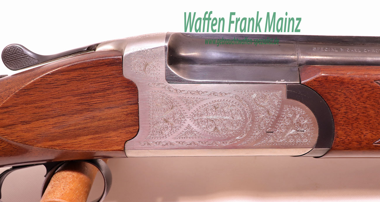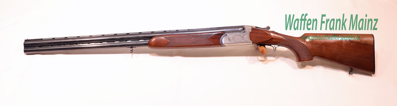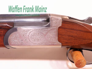 selten geschossene Schrankwaffe, mit Stahlsystem, Flanken-/Purdeyverschluss, Doppelabzug mit Ejektor, Choke 1/2-1/1, mit ventilierten Laufbanden und Laufschiene…..Univeralflinte für Jagd und Sport…