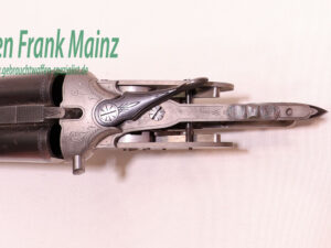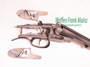 aus Kundennachlass, ein weißfertiges Flintensystem, nachträglich mit Seitenschlössern und Rückstecher erweitert durch Fa. Bailer, Schnürpflingen, mit Neubeschuss 2008, die Idee war zusätzlich noch ein Büchsflinten- und Doppelbüchslaufbündel zu ergänzen, Holzteile fehlen…….welcher Kolleg hat Interesse dieses Werk zu vollenden…Preis auf Anfrage