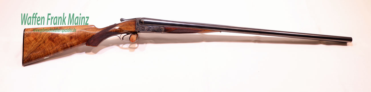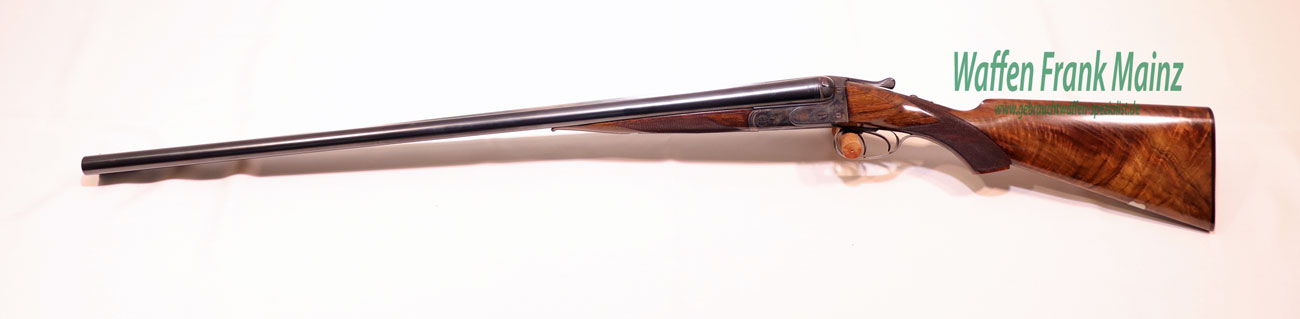 aus Sammlungsauflösung, vor einigen Jahren aufwendig fachlich generalüberholt, als „Spezialität“ wurden diesen Flinten weltweit für das lebende Taubenschießen und sportliche Tontaubenschießen verwendet und zur Olympiade in Schweden 1924 von über 80% der Teilnehmer geschossen, so auch vom Gold- und Silbermedaillengewinner, die Konstruktion weist eine hochwertige Verarbeitung im Schloß, Verschluss, Schaft und Designbereich auf, verstärkte Läufe aus Krupp-Spezial-Gewehrstahl, konisch zu laufende Schiene, schnell schlagendes Anson-Schloß mit Doppelabzug und automatischer Sicherung, verstärktes System und Laufhaken mit zusätzlicher Greenernase, mit zusätzlichem preußischem Abnahmestempel für gehobene Exportqualität und zusätzliche Beschriftung „Made in Preussia“, sowie Sicherungsschieberhinweis in englisch „safe“, Choke 1/1-1/1, Gewicht 3,25 kg, trotzdem perfekte Balance! neutraler, backenloser Nussbaumschaft mit Pistolengriff, Schaftlänge inkl. original Hornkappe 360mm, aus hochwertigem Wurzelmaserholz Kl. 7-8…..eine Top-Rarität in musealem Zustand, zum Sammeln und Schießen…