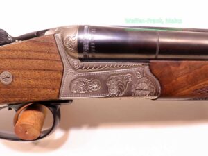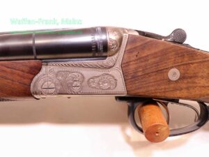 ungeschossen, aus Sammlungsauflösung, daher auch noch mit keiner Optik versehen, mit dem jetzigen Vorteil völlig freie Wahl bei der weiteren Ausstattung der Waffe zu haben, der Hersteller gilt seit über 100 Jahren als führender Drillingsspezialist, auch in diesem Fall mit patentierten Extras, wie freiliegender Kugellauf, Kugelschloßhandspannung und Sicherungsschieber für die Schrotschlößer links auf der verlängerten Systemscheibe, gewichtsreduzierendes Duralsystem (mit sichtbaren Kratzern im Innenbereich -Funktion nicht beeinträchtigt- ), gut gemaserter Nussbaumschaft mit Backe für Rechtsschützen, Schaftlänge 365mm….mit einer entsprechenden Optik und ggf. noch mit Einstecklauf die Universalwaffe von Raubzeug bis Hochwild, mit beherrschbarem und wildbretschonendem Kaliber…(große Munitionauswahl ab Lager)