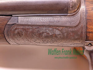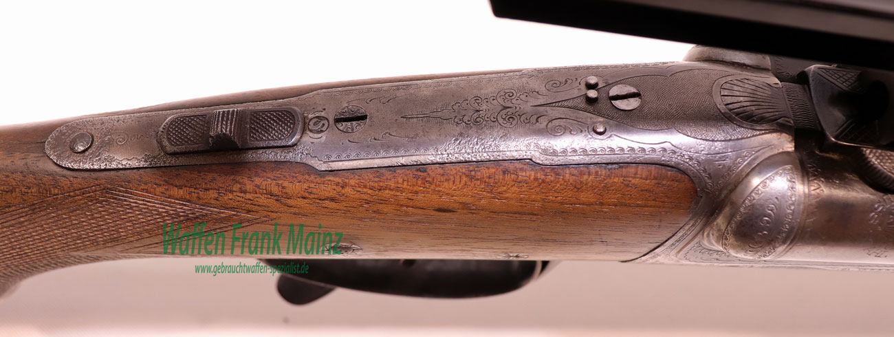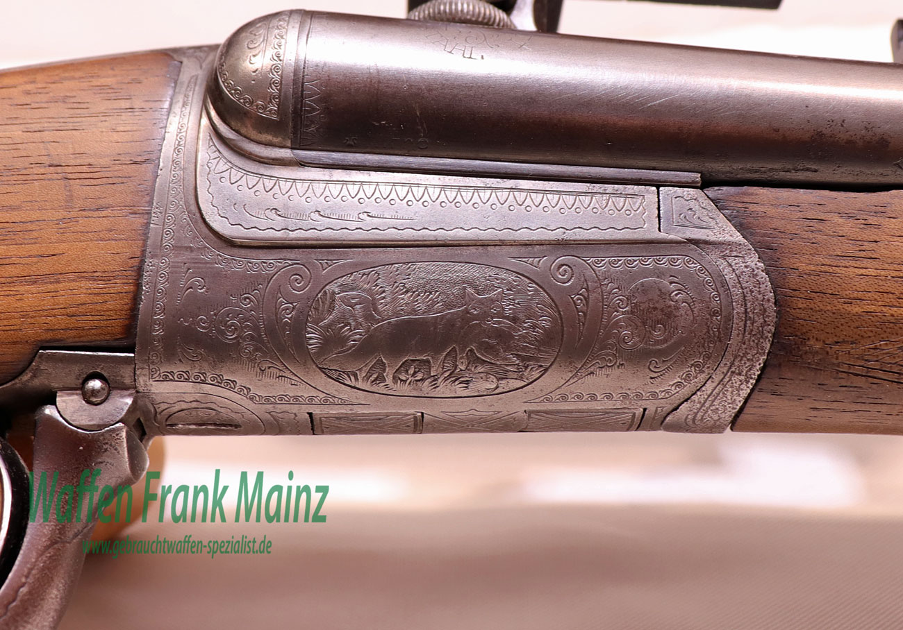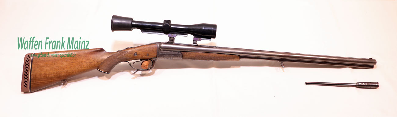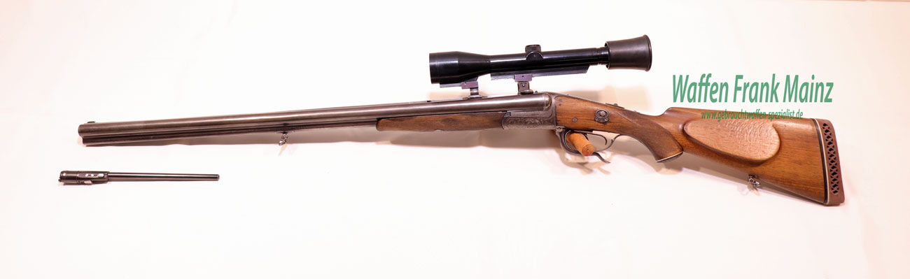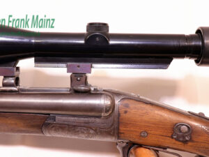 klassischer Förster Drilling aus Suhler Vorkriegsfertigung, mit doppelten Laufhaken und zusätzlichem Linsenverschluss nach Rox Patent, bereits mit gültigem Nitrobeschuss und Kugellaufprofil füt Mantelgeschosse, Suhler Einhakmontage mit Durchsicht mit ZF Tasco 6×40 Absehen 1 aus den 80er Jahren, mit Einstecklauf Krieghoff mit werksausgesuchter Werkschussleistung „extra“, Kal. .22Magnum im rechten Schrotlauf, klassische Schaftform mit deutscher Backe für Rechtsschützen, Schaftlänge einschl, Gummikappe 360mm, Läufe größtenteils blank, Kugellauf mit scharfkantigem Profil, ohne meßbare Vorweite….dieses Jagdgewehr wurde während der Besatzungszeit versteckt und nach dem Krieg fachlich überarbeitet…(Munition ab Lager lieferbar)
