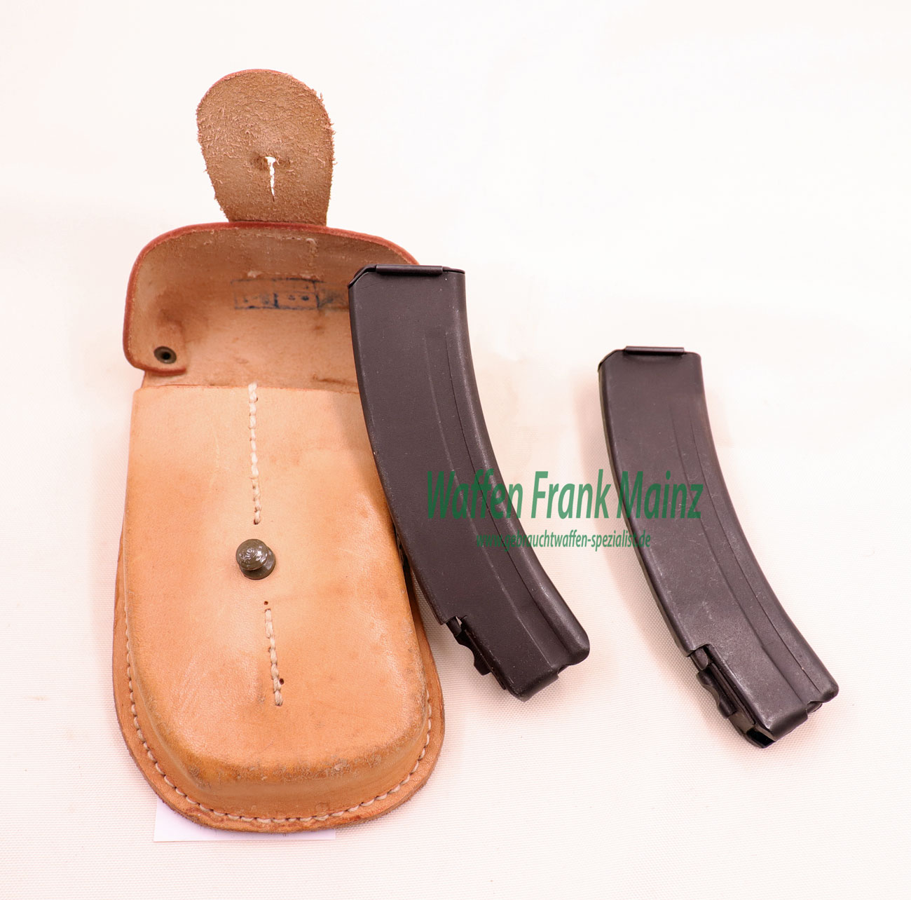 Originalzustand, Set bestehend aus hellbraunem Lederetui inkl. 2 Original 20 Schuss Magazine