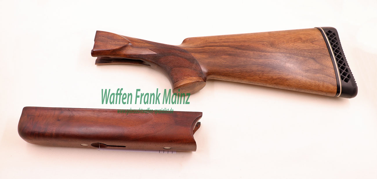 Original Vorder- und Hinterschaft, passend für Mod. K32/80, bestehend aus Halbbiberschwanz-Vorderschaft Länge 25cm, neutraler, backenloser Universalschaft Typ Parcour Länge inkl. Schaftkappe 370mm