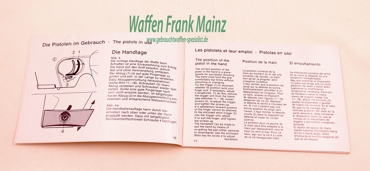 Original Bedienungsanleitungen für die Sportpistole OSP/GSP, 47-seitig, mehrsprachig (Bild beispielhaft)