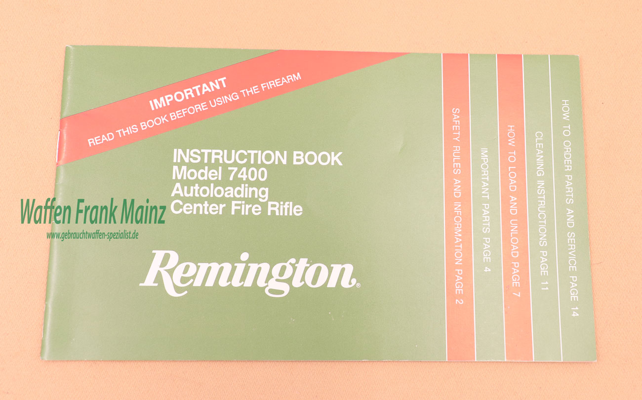 Original Bedienungsanleitung für Remington Mod. 7400 in englisch, 17-seitig