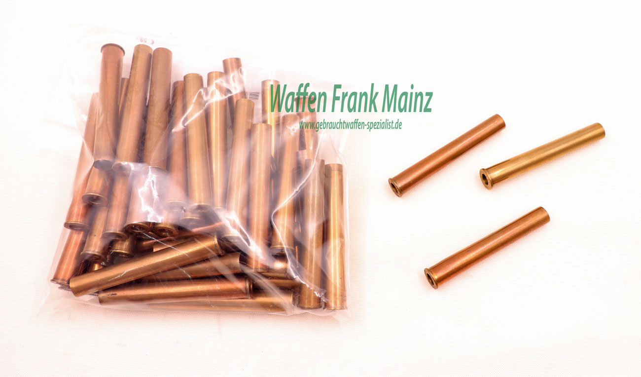 einmal geschossene Hülsen, noch mit Berdan-Zündung (damit auch gleichmäßige Funktion bei Hahnwaffen), 45 Stück