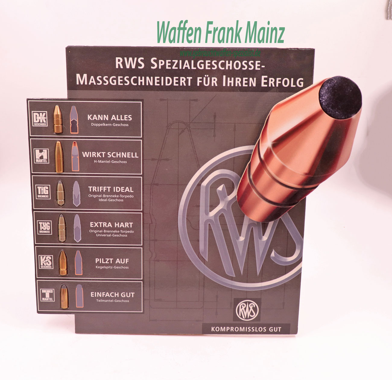 Download der Produktioninformationen für Munitionsdisplay RWS/Rottweil Lehr-, Deko- & Sammlerzwecke als PDF: hier